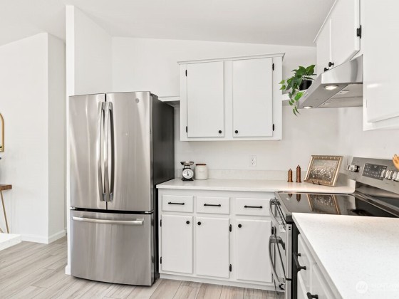 Welcome to this stunning remodeled 3-brm,2-bathroom home offering 1,400sq.feet of stylish,open-concept living.Nestled in the peaceful HorseShoe Acres55+community near the Green River,this home is a dream for outdoor lovers-perfect for seasonal salmon fishing&just steps from scenic trails.Inside,you'll find vaulted ceilings& spacious living room that creates an airy,inviting atmosphere.Recent updates include a brand-new roof,fresh interior&exterior paint,luxurious LVP flooring,& beautifully updated kitchen featuring S/S appliances.Enjoy the private patio area,ideal for summer barbecues& relaxing evenings.The washer&dryer are included,making this home move-in ready.With space rent at just $875,this is an exceptional opportunity.Don't miss it!