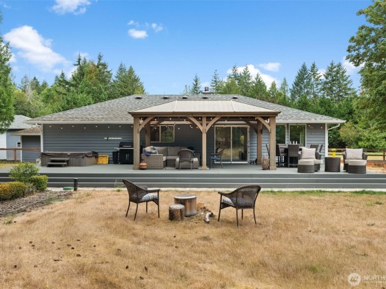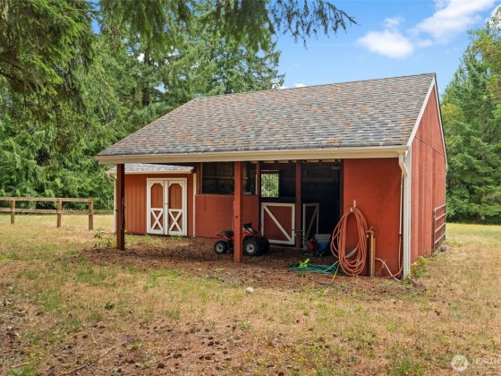 Luxury property on 5 acres fully fenced with stable, tack room, paddocks, on the most peaceful meandering property you could ever ask for! The home is loaded with upgrades too like an enormous chefs kitchen, additional sprawling butler/entertainers pantry with wine cabinet, fridge, more prep space. Primary Suite would rival any 5 star hotel with opulent ensuite, wet area, heated flooring, dual shower, custom lighting, walk in closet, and dressing room. Garage is a work out zone/hobby goal! Plus 1600+ sq ft shop, 9000 lb Eastwood car lift, RV door, storage, sports courts. The best part is an outdoor living dream, the over $100k deck, gazebo, hot tub, and 1000 sq ft of Trex to enjoy your amazing property. Ask for a complete list of upgrades!
