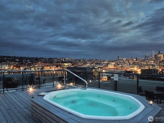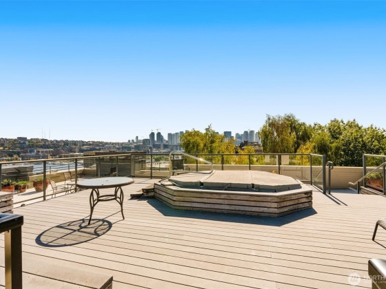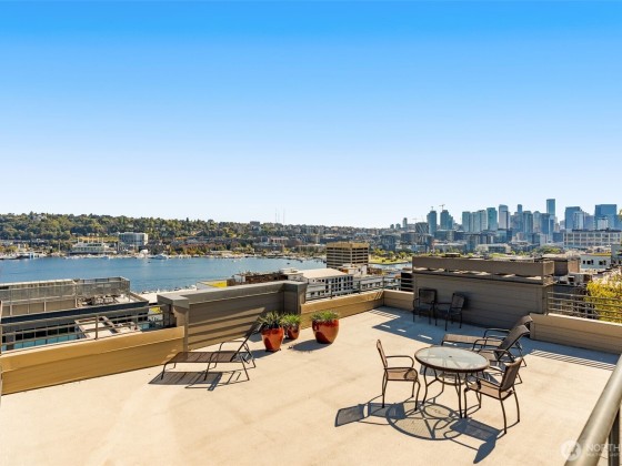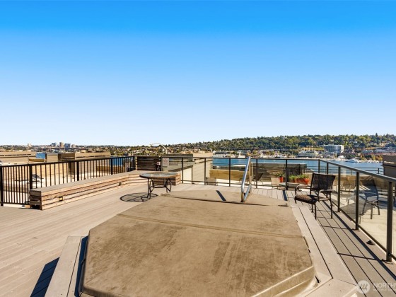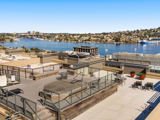 Welcome home to this beautifully updated 2-bd/1-ba corner unit condo in the heart of Westlake. Step inside to find an open-concept living space with peekaboo views of Lake Union, a cozy wood-burning fireplace, and an elegant kitchen with sleek countertops, modern cabinetry, and Stainless-Steel appliances — perfect for daily living and hosting. Enjoy stunning views of Lake Union & downtown Seattle on the expansive rooftop deck — complete with a hot tub and lounge areas, ideal for entertaining and 4th of July fireworks. Secure building w/ elevator, garage w/ assigned parking. Strong HOA, no rental cap. Moments from downtown and Lake Union. Get to work and local hotspots by foot, bike, or transit in a breeze. Urban living at its best!