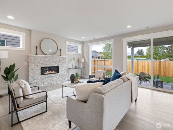 Welcome to Harvest Trails! The Claremont, lot 5, offers a spacious 2,501 sq ft floorplan w/4 beds & 2.75 baths. Main floor features a bedroom, 3/4 bathroom, open kitchen, dining room & great room w/gas fireplace. Enjoy a covered patio w/outdoor fireplace, full landscaping & fully fenced backyard. The second floor features a bonus room, bedrooms, laundry and spacious primary bedroom with en suite bathroom and walk-in closet. Quality finishes include white cabinetry, stainless steel appliances, quartz counters, heat pump (providing A/C), Deako smart switches, garage door opener with remote & more! Site Registration policy: Buyers must register Broker on 1st visit & bring agent on 2nd visit. Pictures are of same floorplan in another community.