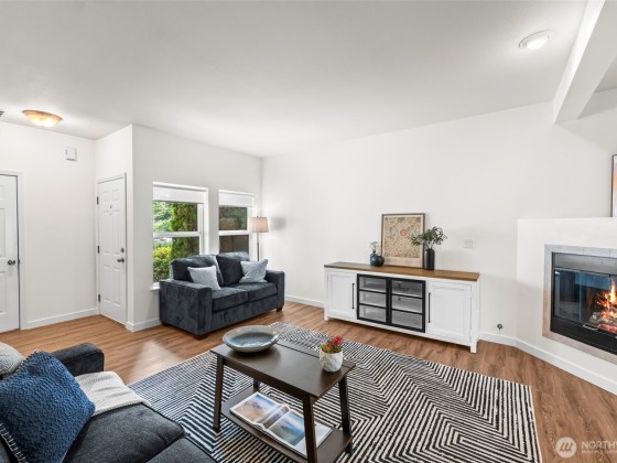 Welcome to Downtown Puyallup! Enjoy the feeling of privacy combined with luxury updates throughout in this spacious 2 bedroom, 2.25 bathroom unit. High ceilings, brand-new flooring, fresh interior paint, new cabinets and countertops, large living room with cozy fireplace, and private patio with shade garden. Upstairs find the primary suite featuring walk-in closet and private bath. Attached 1-car garage plus overhead storage racks. Beautifully maintained grounds, gazebo near pond, and guest parking. Conveniently located near hwy 167 and 512, Washington State Fairgrounds, and Farmer's Market for shopping, dining, concerts and more. This home offers low-maintenance living, quality upgrades, and excellent commuter access!
