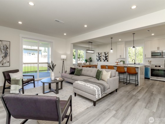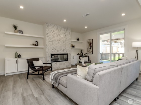Step into this stunning new construction home, professionally staged to showcase its modern elegance. Featuring 4 spacious bedrooms and 2.5 bathrooms, this 2,387 sq ft residence offers a bright, open-concept layout with beautiful finishes throughout. The gourmet kitchen boasts quartz countertops, stainless steel appliances, custom cabinetry, and a large island perfect for entertaining. Upstairs, the luxurious primary suite includes a walk-in closet and spa-like bathroom. Enjoy year-round comfort with central A/C, an attached 2-car garage, and a fully landscaped yard with fresh new grass. Conveniently located near major freeways, SeaTac Airport, downtown Seattle, and Southcenter Mall. No HOA. Move-in ready and built to impress!