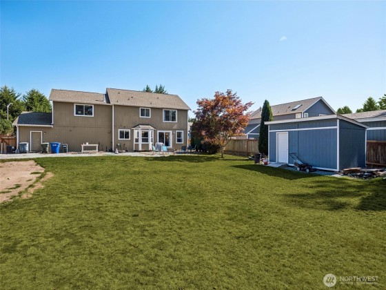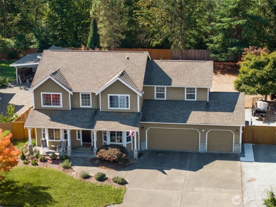 Tucked in a quiet neighborhood, this stunning 3-bedroom, 2.5-bath, 2,260 SQFT home rests on nearly a half-acre! Step inside to an inviting entry with hardwood floors, vaulted ceilings, & arched doorways. The main level offers an office, half bath, & formal dining room. Bright & open family room w/gas fireplace, flowing seamlessly into the updated kitchen. A slider leads to your fully fenced yard & backs to greenbelt, perfect for indoor-outdoor living. Upstairs, the owner’s suite boasts a five-piece bath w/soaking tub,shower, double vanity,& walk-in closet. Two bedrooms share a full bath, plus a bonus room above the garage. Storage Shed, RV parking, 3 car garage & massive driveway-all the space you've been looking for! This is a must-see!