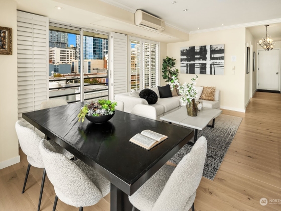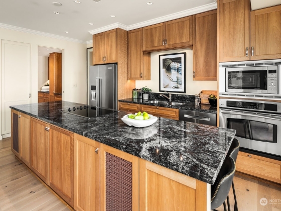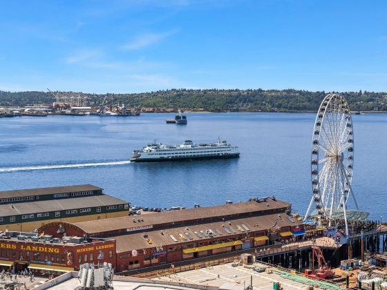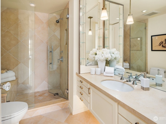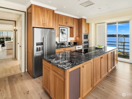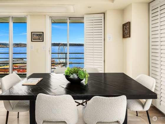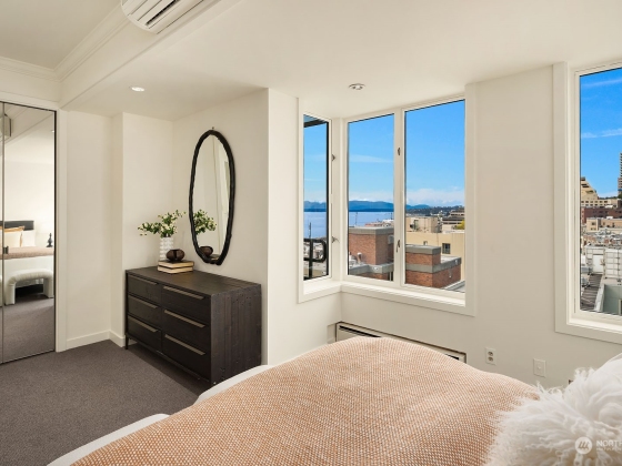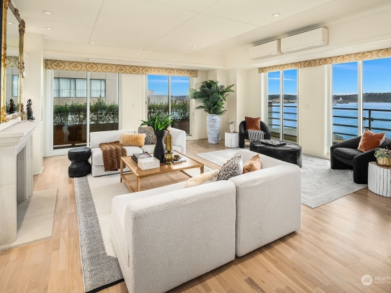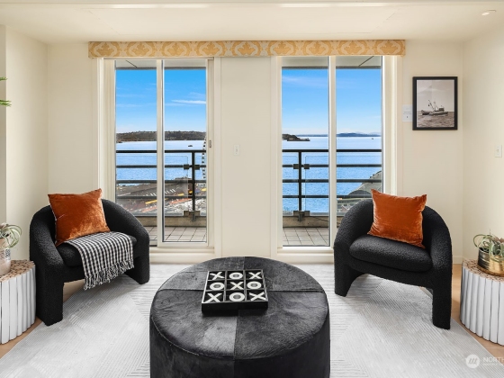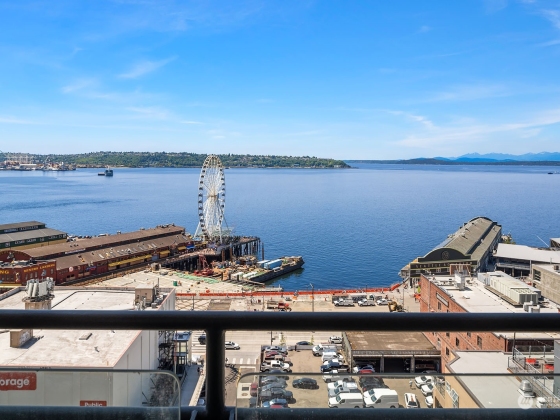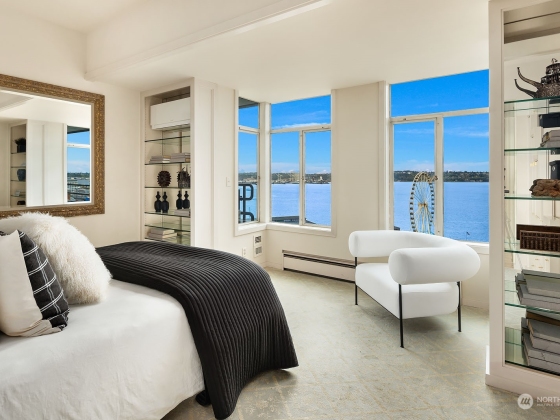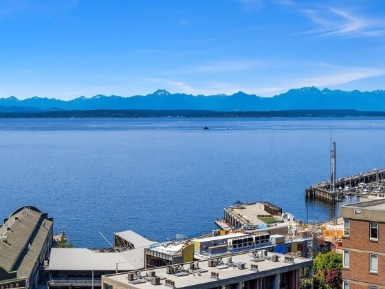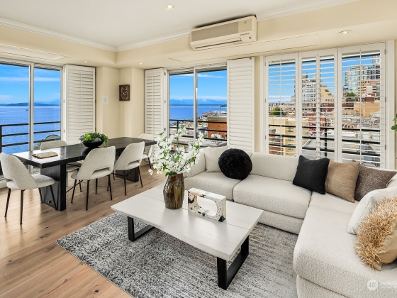 Another major price drop! Bring an offer!!! This luxurious home is front & center above it all. It floats elegantly above the Big Wheel & popular Waterfront. Spacious 3 BRs w/ serenity & seclusion. 2 units combined spans the entire westernly side of this concierge building. Wrap-around patios are unobstructed views of the Bay, Olympic Mtns & amazing sunsets. Each space conveys comfort & smart design. Formal entry presents ample wall space for artenthusiasts & a great first impression. Walls of windows welcome light. Built-ins & closets provide generous storage.Kitchen/family rms gaze north to Pike Place Mkt. 2 pkg spaces & storage. Close to SAM, Four Seasons for dining or spa visits, Benaroya Hall & the Market. Seller is ready to sell!