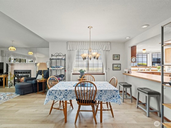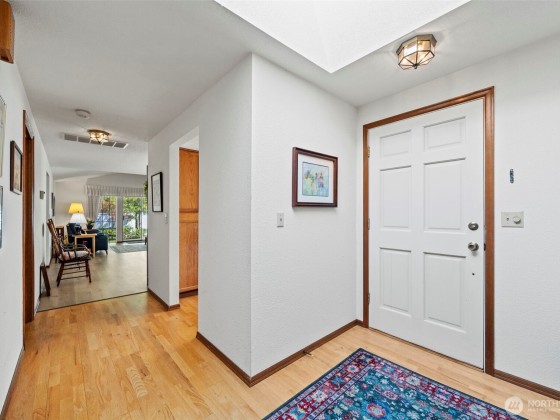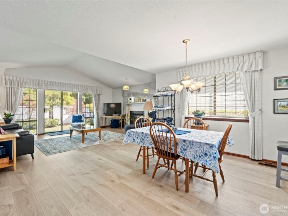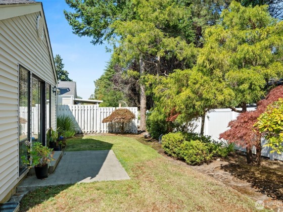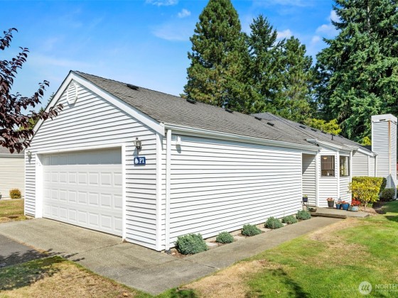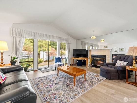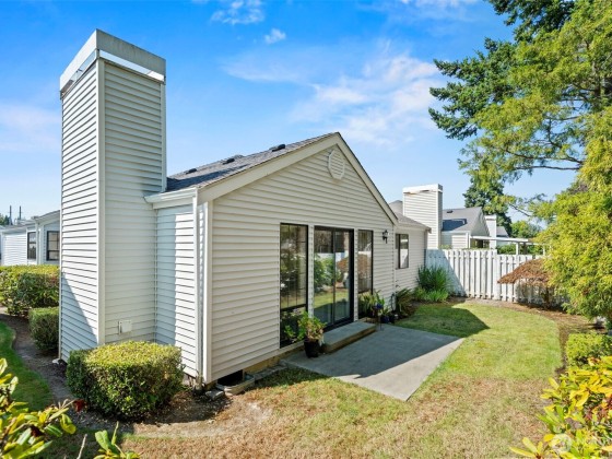 Highly sought after one-level in quiet 55+ community, Narrows Reach. Skylight and hardwoods in entry & kitchen. Open floor plan with vaulted ceiling in formal living/dining room/kitchen, Great for entertaining. Wood burning fireplace. Generous Primary w/ en suite bath & walk in closet. Guest bath with jetted soaking tub. Sliding doors off living, dining rooms to private fenced backyard with patio. Yard is beautifully maintained by HOA. Attached 2 car garage and additional parking in driveway for visitors. Community clubhouse can be reserved for parties. Close to freeway, Westgate retail & Point Defiance Park. Nicely updated with many new finishes. This condo is just waiting for you to call it Home!