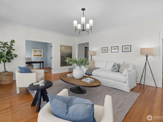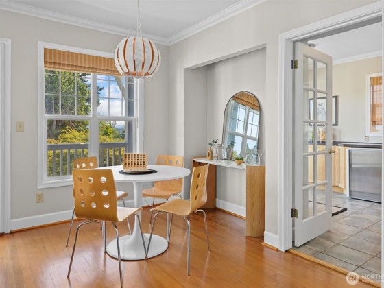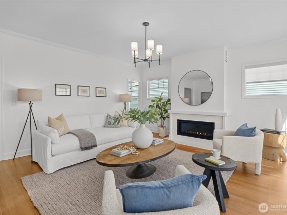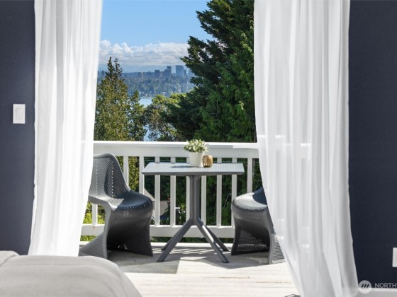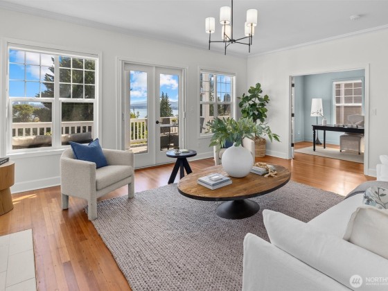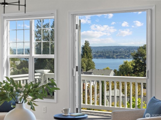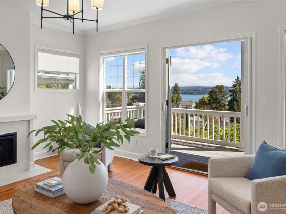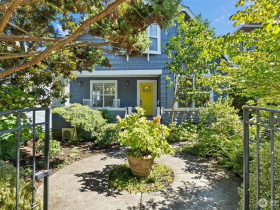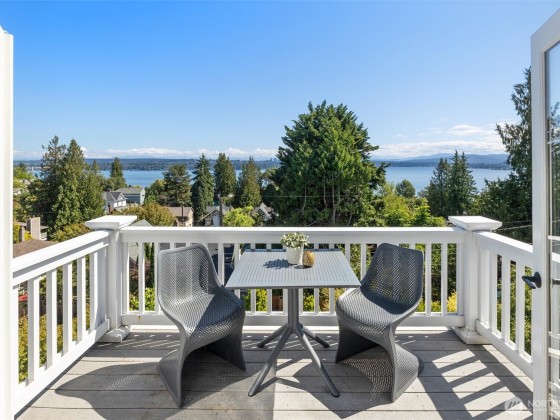 In Madrona Heart with gorgeous views! This 1911 Traditional has a smashing blend of old & new. High ceilings, gracious formals, multiple French Doors, fir & hardwood floors, multiple decks & rocking-chair front porch. Extensively renovated with new professional kitchen, new bathrooms, newer furnace, A/C, 3 skylights, 2 gas fireplaces & lots of new hardware & fixtures. Full Primary Suite with private deck & 2nd bed & bath on top floor. Lower is MIL/ADU ready with rec room & en suite bedroom. Setting is street-to-street lot, collector-level gardens stroll down to 38th. Absolutely beautiful property in a great in-city pocket so close to Madrona cafes/shops/restaurants. Easy access to downtown Seattle, UW & eastside too. Get ready to fall hard.