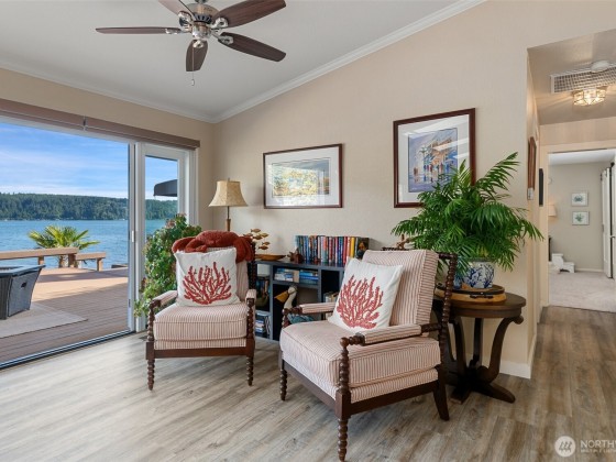 Relax, recharge, and soak up the beach life in this fully updated Shorebrook retreat. Tucked off the road for maximum peace and privacy, this move-in ready home offers main-floor living, A/C, and a two-car garage. The open great room flows to a spacious waterside deck—perfect for grilling, lounging, or watching the tide roll in. Cozy up by the fireplace or unwind upstairs in the lofted TV/game room and bonus space. Two bedrooms and two 3/4 baths on the main. Every inch has been refreshed for easy, breezy living. Just steps to the community beach, dock, float, boat launch, and park—bring your kayak, crab pots, and flip-flops!