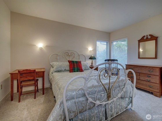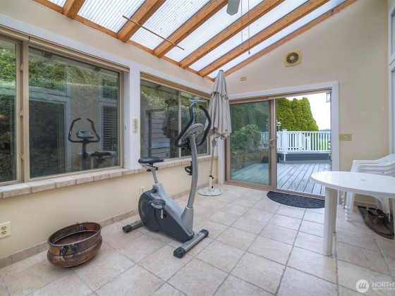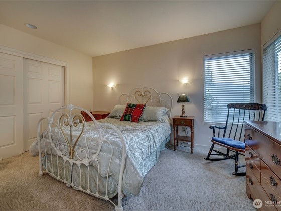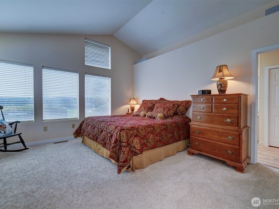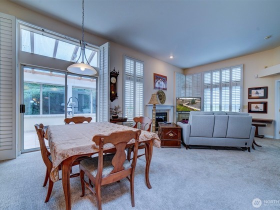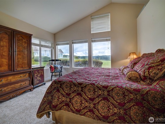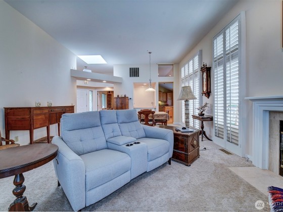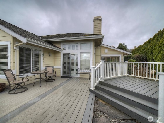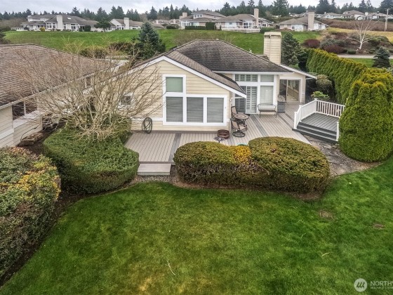 Effortless living in this 1-story Bayview Village home, where natural light and mountain & water views await. The open layout is centered around a spacious living room with high ceilings, fireplace, and striking custom shutters. The kitchen features SS appliances, loads of cabinetry, and a casual dining area. Retreat to the large primary suite w/high ceilings & corner windows framing serene views and a 5-piece en suite. The home office boasts custom-built shelving and cabinetry. Relax year-round in the sun room or entertain on the expansive deck with Trex decking. The crawl space has been upgraded with new insulation & French drain. HOA maintains the landscaping and South Bay Club membership provides access to a of wide range of amenities.