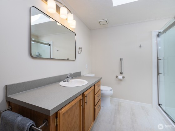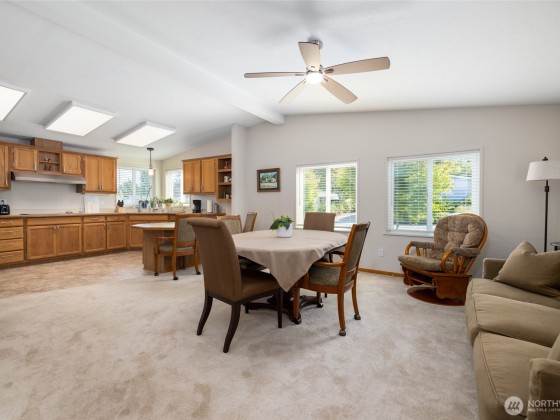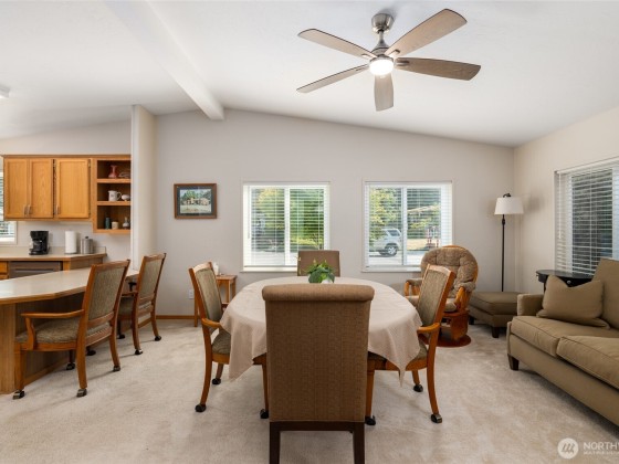 Lovely updated manufactured double-wide home in Vista Too, a desirable 55+ manufactured home community. Lot included with home. Large master with newer carpeting, walk-in closet and fully remodeled private bath. 2 guest rooms plus a remodeled guest bath, family room, office area and dining area open to the kitchen. Updated kitchen includes flooring, light fixtures and instant hot water. All windows have been replaced and all new window treatments, 2023-24. New flooring in entrance, kitchen, laundry and both baths as well as new light fixtures and ceiling fans. 2 entries with covered porches. Large detached extra deep garage with alley access includes shop space. Come and take a look!