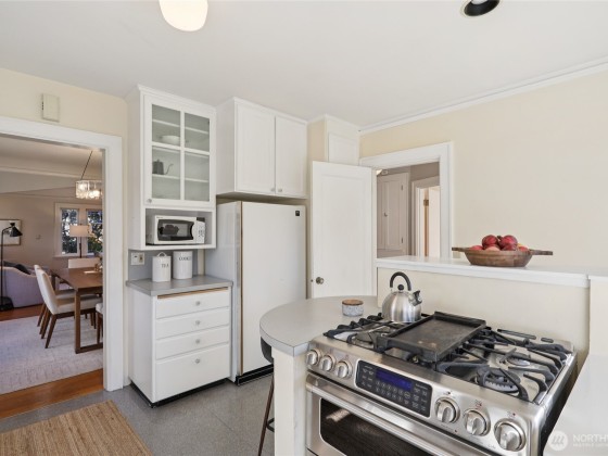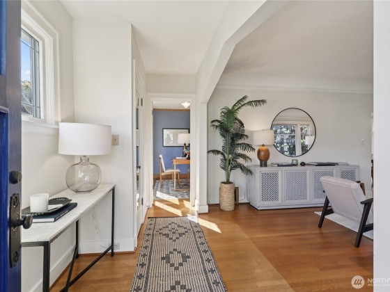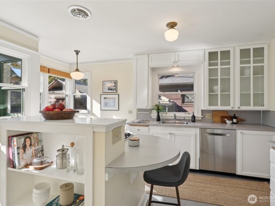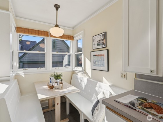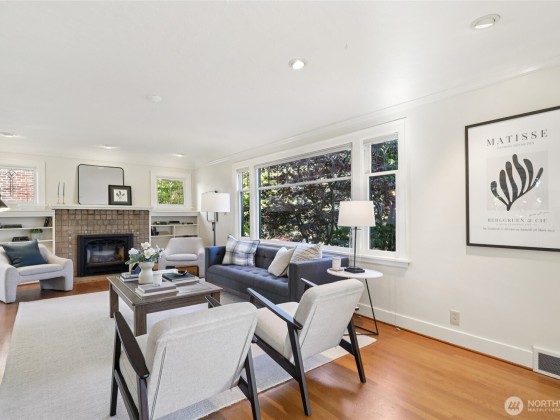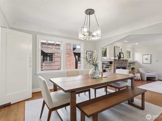 This timeless Ravenna home proudly sits on a quiet, tree-lined street in one of NE Seattle’s most coveted neighborhoods. Exuding classic architectural charm, the main floor is the heart of the home, with a dedicated office plus a 4th bedroom, and a sunlit kitchen with eat-in dining that overlooks the private garden sanctuary. The formal dining flows effortlessly to an expansive living room, anchored by a cozy gas fireplace. Upstairs awaits a generous primary bedroom plus 2 sizable bedrooms and a full bath. The lower level with tall ceilings offers endless possibilities. Abundant natural light bathes every space throughout the home. Modern luxuries include A/C, solar panels, and a detached 2-car garage—don't miss this extraordinary offering.