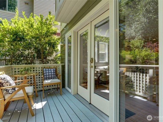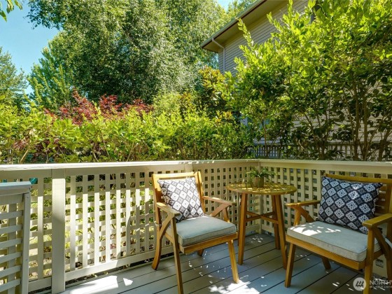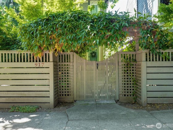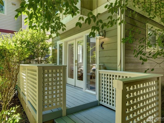 A rare, unique high-quality townhome that lives like a house! 1 of just 4 custom townhomes behind the garden gates of this idyllic private site on a leafy tree-lined street. Just 2 floors, with only one partial attached wall on 2nd floor. Main floor living, dining, kitchen and direct entry from secured shared garage provides house-like functionality. High quality engineered hardwood on main, timeless/contemporary kitchen with gas range is open to full sized dining and living rooms, A/C on both floors. Two ground floor decks and house-like front yard gardens. Two spacious bedrooms and two baths up, plus full bath and laundry room on main. Open and updated design lends itself to modern, traditional or a blend of both for furnishing tastes.