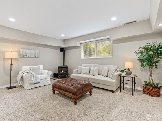 Tucked in a quiet University Place cul-de-sac backing to a peaceful greenbelt, this 4bd/3ba, 2652 sq ft home shines w/pride of ownership. Beautifully maintained & extensively updated. Fully fenced yard for privacy & peace. Upstairs: Open concept living/dining w/lovely custom remodeled kitchen & hardwoods. Primary bdrm W/ 3/4 bath, 2 additional bedrooms + full bath. Downstairs is a great rm w/pellet stove also plumbed for wet bar, 1 bdrm, 3/4 bath, & lrg laundry rm. The oversized 2-car garage will not disappoint! Major updates within last 10 yrs: roof, int/ext paint, flrs, baseboards, kitchen & bath remodels, windows w/custom blinds, furnace & A/C 2023 & more! List available! UP school district, minutes from Chambers Bay, & amenities galore!
