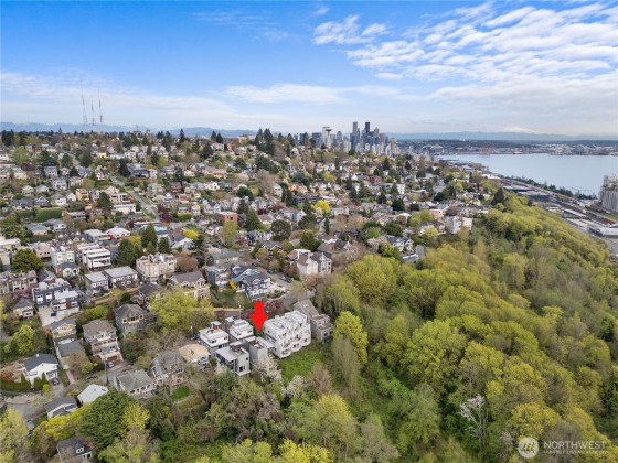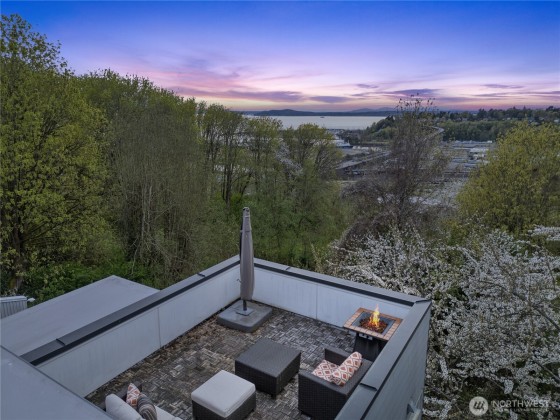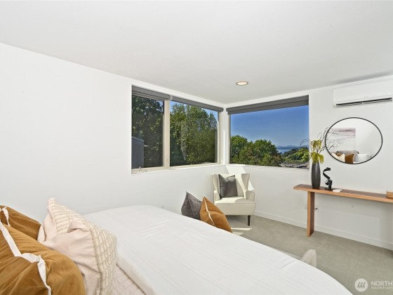 Stunning Stand Alone & SW-Facing Modern Home with Privacy Views! Built in 2017 & with abundant natural light throughout, there aren't many like this one. 4 beds, 3.5 baths & incredible 360-degree rooftop view deck. This home offers a perfect blend of chic design & comfort. Just ideal for those seeking both luxury & size. Gas fireplace in living room, vistas from the dining room, kitchen has island & Primary Suite has spa-like bath with XL shower. Enjoy breathtaking westerly views of the Bay/Sound & incredible sunsets. Custom window treatments, outdoor space, energy-efficient radiant heat, A/C & custom wood beam shelves are nice everyday touches. Minutes from SLU/downtown & close to QA coffee shops & restaurants as well.