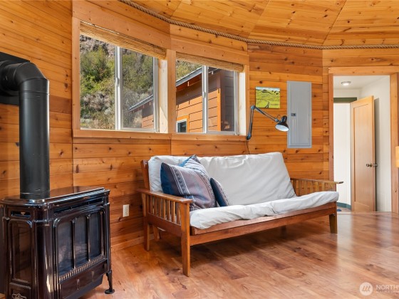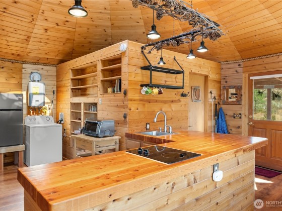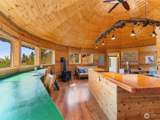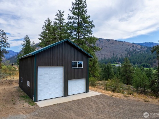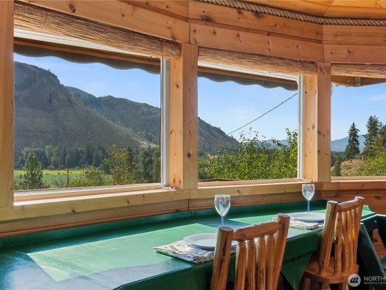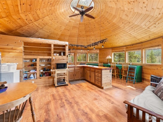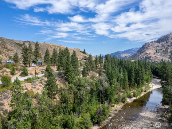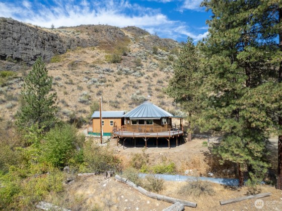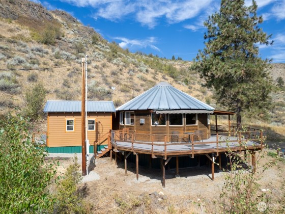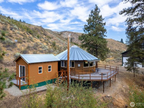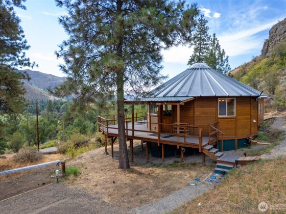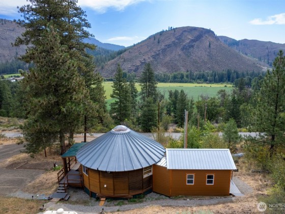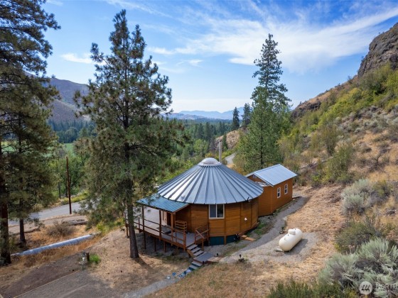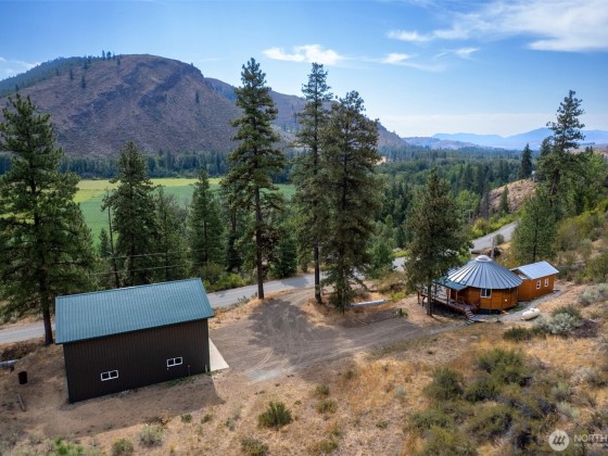 Unique 672 sf 1 bed, 1 bath round house with warm wood finishes, cozy propane fireplace, on-demand hot water, and east-facing windows that flood the space with natural light. Enjoy a wraparound deck and sweeping, permanently protected views of the West Chewuch river valley. A 1,350 sf, three-level insulated pole barn offers a concrete floor, RV parking, workshop, and abundant storage. Just 6 miles from Winthrop and Falls Creek Falls in the Okanogan National Forest—ideal for endless recreation or quick trips to town. Your Methow Valley adventure base starts here.