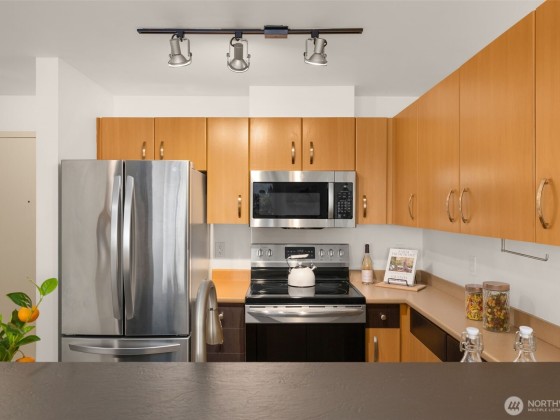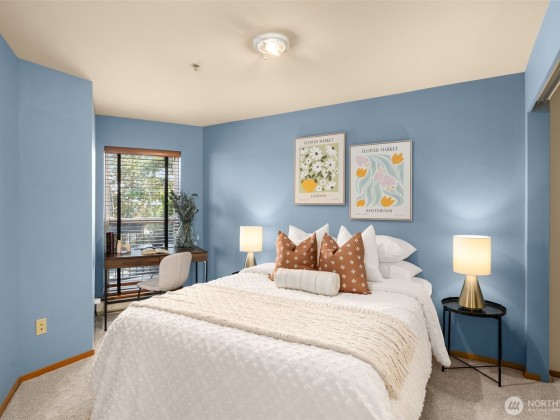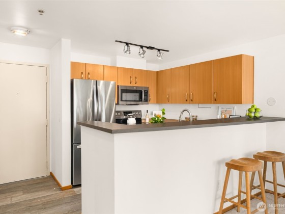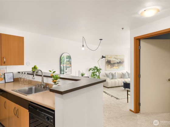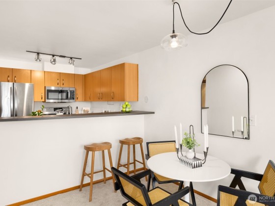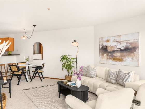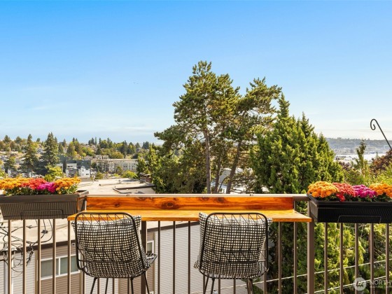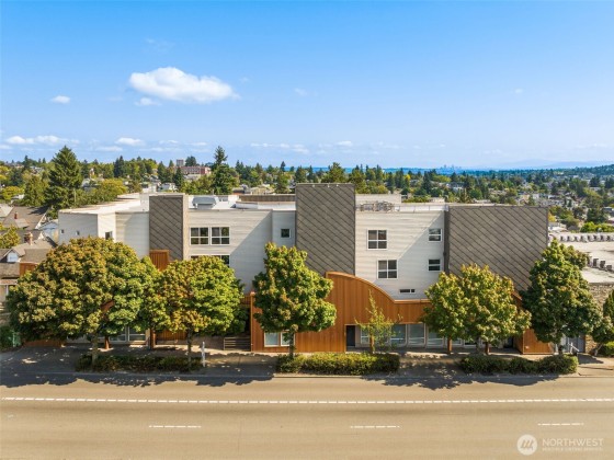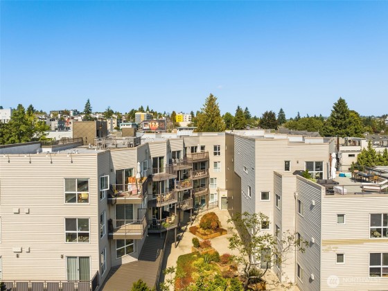 Sunny, spacious top-floor condo w/ panoramic VIEWS of Cascades, Mt Rainier, Lake Union & Seattle skyline, all from your private balcony. Unbeatable location—just blocks to Fremont’s top cafes, parks, shops & transit—putting the city’s best right at your doorstep. Inviting, open floorplan flows seamlessly from dining to living, where expansive windows frame striking vistas. Lrg kitchen w/ stainless steel appliances, breakfast bar, ample counterspace. Move-in ready: new carpet, fresh paint, sleek finishes, in-unit washer/dryer. Secure garage parking w/ storage & EV outlet ready. Unit located in sought-after, QUIET back building facing east. Solid HOA, pet friendly, elevator, no rental cap! 91 walkscore, minutes to Downtown, I-5. A MUST SEE!
