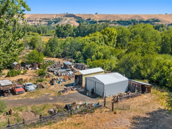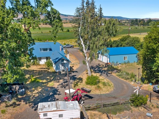 Welcome to a rare opportunity to own a piece of history—this iconic 1920s farmhouse rests on 7.37 acres with sweeping territorial views & endless potential. Bursting with original charm, the home features natural wood floors hidden beneath the carpet, beautifully preserved built-ins & vintage character throughout. With a little sweat equity, this homestead is ready to be brought back to life. Equipped w/a large shop, multiple outbuildings & ample space for future expansion. Whether you're dreaming of a hobby farm, equestrian setup, small-scale agriculture, or operating a home-based business/event hosting, the flexible layout opens the door to a variety of uses. The land is your canvas—ready to support your vision of rural living.