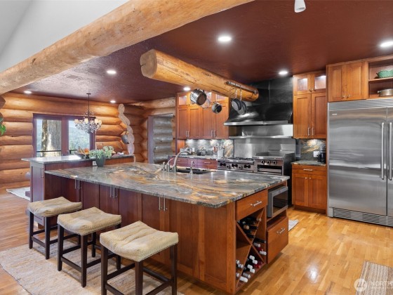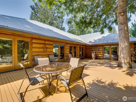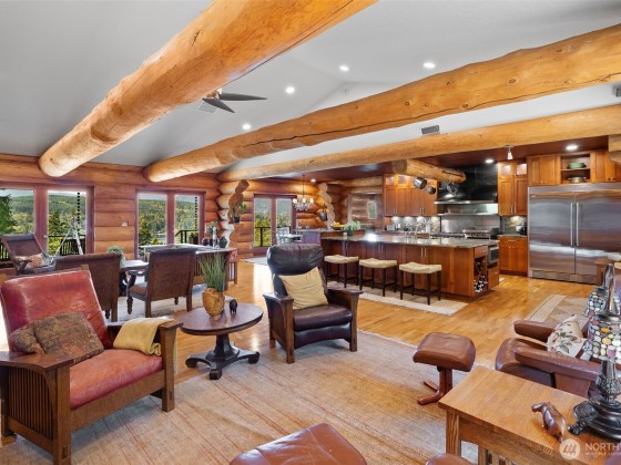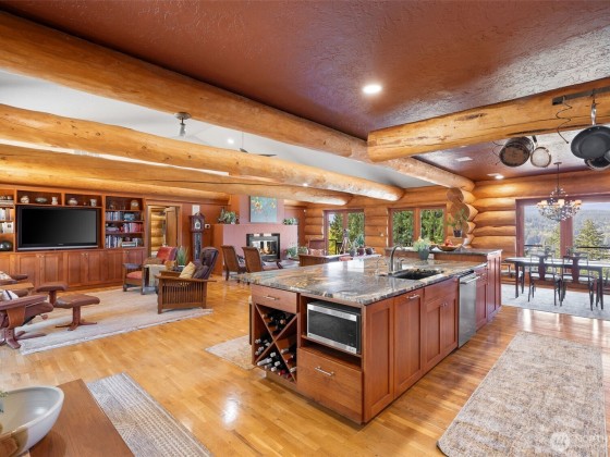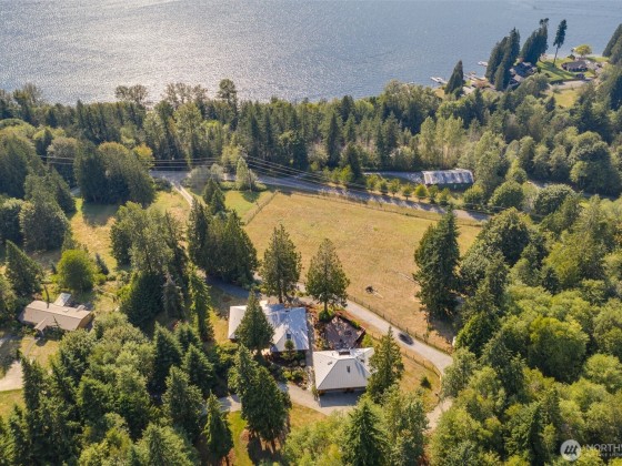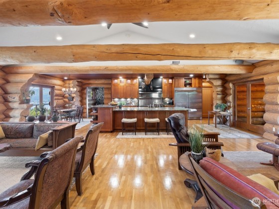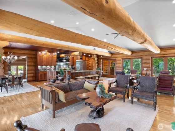 Panoramic Lake Samish & Chuckanut Mountains views from this custom log home built with massive BC timber with guest house perched on 7.85 acres in a park-like setting. Main house includes great room with chef’s kitchen, luxury master suite with fireplace, 3 bedrooms, 2 bathrooms, family room, and loft. Guest house includes studio bedroom, 2 bonus rooms, 2 bathrooms, walk-in closet, and steam shower. Two 2-car garages by the house plus extra 2400 square foot shop space with 3 finished offices. Outdoor living at its finest with multiple decks facing the lake or foothills, 2+/- acre fenced pasture with barn, tree fort, and garden shed. So many special features and finishes you need to see to believe! This is a must-see, one-of-a-kind property.