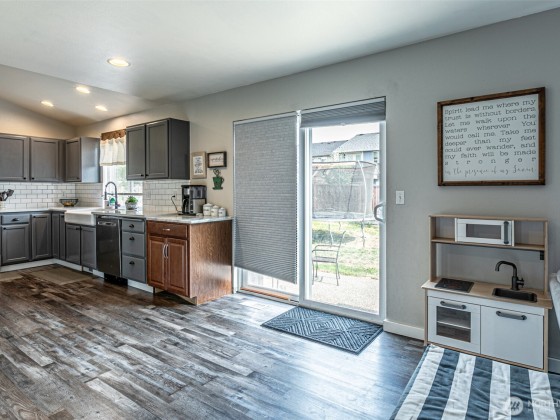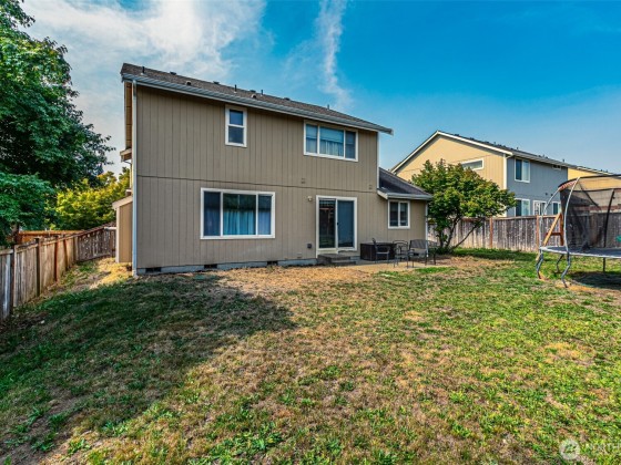 Don't miss this beautiful home. Plenty of natural light, vaulted ceilings & spacious floor plan, you won't want to miss this one! Main floor features formal living, dining, updated kitchen w/ quartz counter tops and stainless steel appliances. Laundry on main floor. Primary retreat has tall ceilings, walk-in closet & private en-suite. 3 additional bedrooms & small loft space upstairs. House has A/C. Spacious back yard is ready for entertaining! Community park out front door & close to JBLM, shops, restaurants and other amenities.