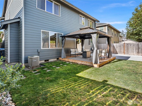 Stunning 4-bedroom + office in the highly desired Emerald Pointe community! This move-in ready home boasts an open floor plan, soaring vaulted ceilings, gorgeous hardwoods, and an updated chef's kitchen with walk-in pantry. Relax in the spacious living room with fireplace or enjoy year-round comfort with A/C, new furnace as well. Roof was replaced in 2018. Fresh interior paint throughout makes it feel brand new! Private, fully fenced backyard, extended patio. Impeccably maintained, sparkling clean, and perfectly located near shopping and within walking distance to schools-don't miss this one!