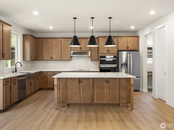 The Ellensburg plan offers 5 spacious bdrms, 4 baths, game room & 2 car garage. Main floor bdrm w/ensuite - complete w/walk-in shower! Luxurious open kitchen w/expansive island & walk-in pantry. Gathering room offers plenty of space to relax & features cozy modern fireplace. Sunny patio off Cafe, oversized primary suite boasts walk in closet, free-standing soaker tub, large shower & dual vanities. Buyer must register their broker on the first visit by completing a Guest Registration Card.