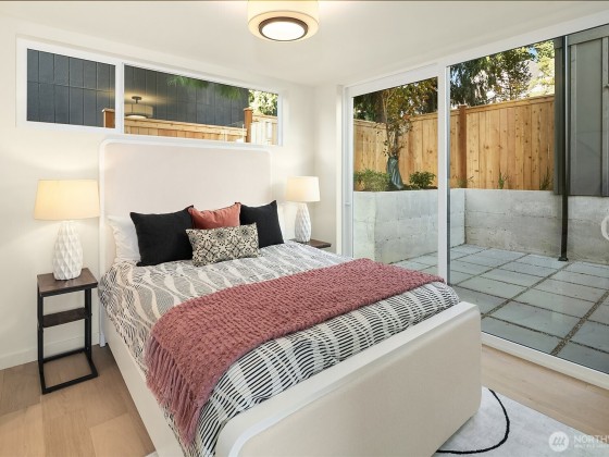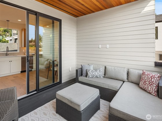 Experience sophisticated living in this newly constructed Magnolia ADU, offering indoor-outdoor living on every level. The main ensuite has a private fenced patio surrounded by greenery. The open-concept living, dining, kitchen level has a covered deck for year-round enjoyment. To top it off, the primary suite has an expansive private rooftop deck! Every corner of this home exudes quality, featuring luxurious engineered hardwoods, stunning Ann Sacks tile, and a premium Fisher & Paykel appliance package and more. Dedicated parking space, EV charger, and builder warranty are included. Come enjoy the convenience of living near "The Village", parks, library, schools, community center, pool, tennis courts plus easy access to DT, SLU, & Expedia!
