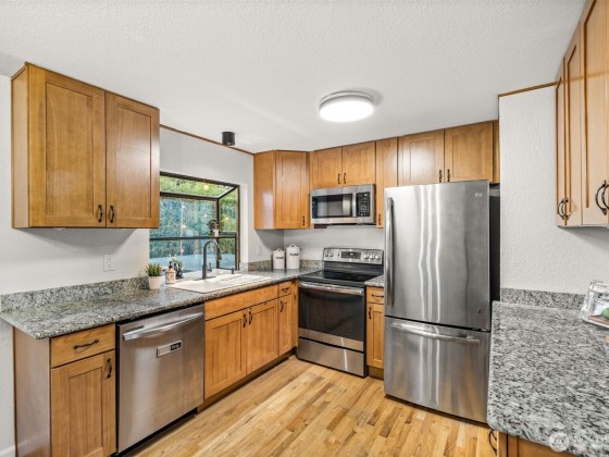 Fabulous move-in ready rambler tucked on a peaceful dead-end street in the Northshore School District. Natural hardwoods welcome you inside to two generous living areas, four bedrooms, and a spacious primary suite with walk-in closet and ensuite. Freshly updated throughout, this home shines with meticulous care. Step outside to your private backyard retreat with a hot tub, mature landscaping, and room to entertain. With air conditioning for summer comfort, a clean inspection report, and easy access to parks, trails, shopping, and dining, this one blends modern comfort with everyday convenience.