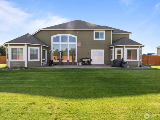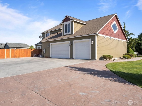 Custom built 5139 sq. ft. home on 1.17+/- acres with a finished 60x40 shop with western facing views on corner lot. Exterior features include cobblestone veneer, stamped concrete, mature landscaping with UGS, fenced backyard. Climate controlled shop has loft area, 1/2 bath. Interior features include tiled flooring throughout, 2 built in desks in kitchen, stainless kitchen appliances, custom wood cabinetry & granite countertops. The en-suite primary bathroom features a jetted tub & large shower & walk in closet. Upstairs with additional living/bonus room. Ceiling fans throughout, expansive windows in main living area with vaulted ceilings. Home also features dual climate control for extra comfort and so much more.