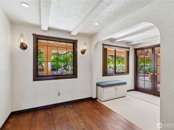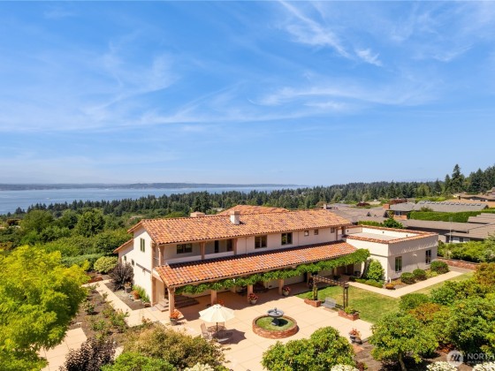 Innis Arden Mission Revival with sweeping sound/mountain views on 1.24 lush, meticulously-landscaped acres set privately at the end of a graceful, winding drive. The main floor includes a vaulted living room, formal dining, family room, office, & spacious chef's kitchen with casual dining area. Upstairs features a primary suite with panoramic view, elegant master bath & huge rooftop deck, plus three bedrooms overlooking the parklike grounds. Oversized 3-car garage has a separate workshop. Exclusive Innis Arden community amenities: pool, tennis courts, playfield & clubhouse. This immaculate home has been lovingly maintained by the original owner and includes countless tasteful & clever custom updates for you to discover, both inside & out!