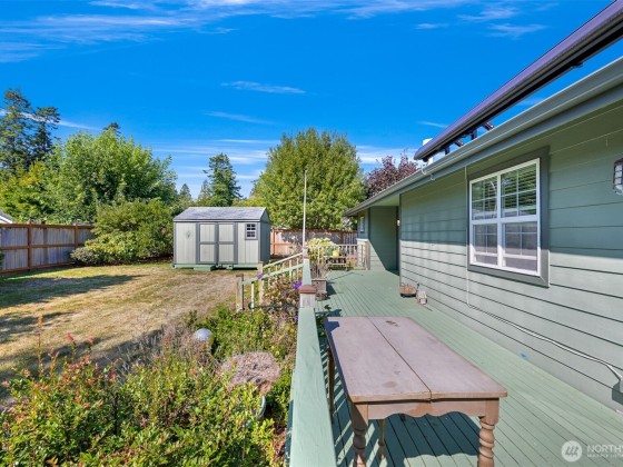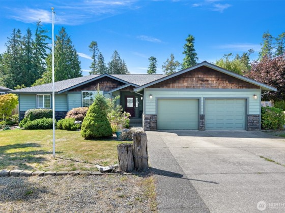 This spacious one-level home is thoughtfully designed for comfortable living, and makes entertaining easy with an open floor plan, cozy fireplace, deck, and fully fenced park-like back yard on a huge approx .37 acre lot. Primary suite with sliding door access to deck and bath with jetted tub, and 2 bedrooms/full bath at the other end of the home. Kitchen with ample cupboards is fully open to the living area. Formal dining room/office, lots of storage throughout, large laundry room with sink & cupboards. Huge 2 car+ garage with separate utility/storage room. Lots of extra parking. Community amenities include 24-hour security, marina, beach access, golf course/recreation center, pool, tennis/basketball/pickleball courts, dog park, and more!