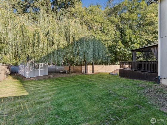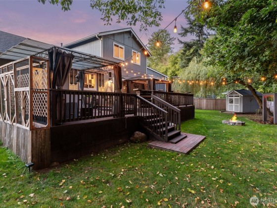 Serene 3-Bedroom retreat in a Cul-de-Sac with your own park-like backyard! Relax on the back deck to the calming sound of a water feature, while hummingbirds flutter nearby. As the evening sets in, gather around the fire pit for cozy moments under the stars. Inside, you’ll discover a bright and welcoming interior, freshly painted throughout. The open-concept living area features vaulted ceilings & a gas fireplace, creating a spacious & inviting atmosphere. The master chef kitchen awaits with modern appliances, ample counter & cabinet space,-perfect for home cooking or entertaining. Air conditioning ensures comfort in every season. Extra storage is available in the shed & under the deck.Close to JBLM, schools & freeways. Call for a showing.