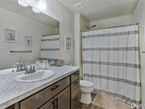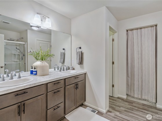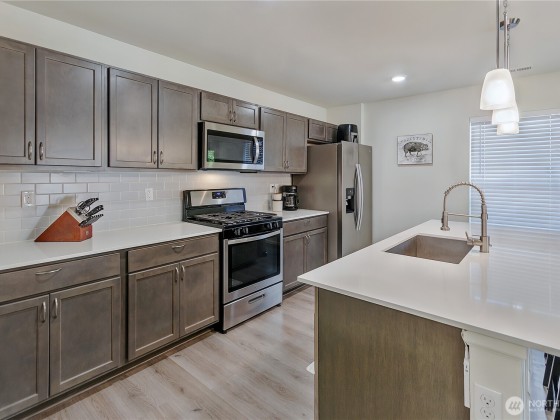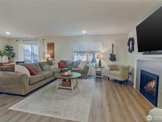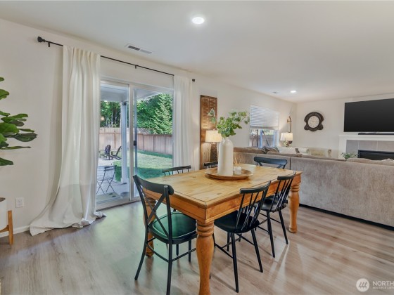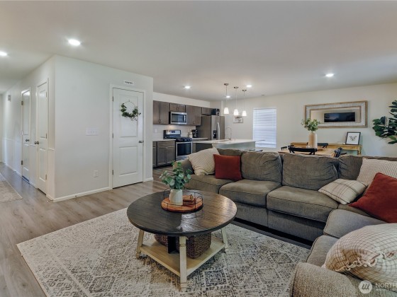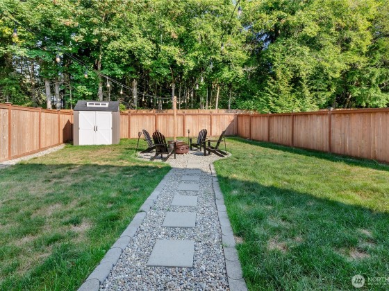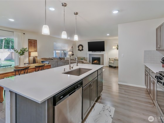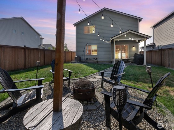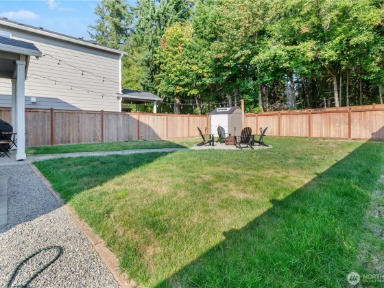**$10,000 BUYER BONUS toward costs, rate buydown; your choice!** Unique corner lot opportunity at The Preserve: 3 bed, 2.5 bath home backs to trees & trails, providing rare privacy & space. Open-concept main floor has classic charm & clean, modern appeal w/ bright solid counters, stainless appliances, subway tile backsplash, gas fireplace & elegant wall detailing in entry. Upstairs: all bedrooms, laundry, a bonus room (potential 4th bed), & a spacious primary suite w/ walk-in closet & double sinks in ensuite bath. Larger yard, fully fenced w/ tasteful landscaped fire pit, covered patio & shed. Tankless water heater, Central A/C, & 2-car garage w/ storage. Near Costco, dining, entertainment, dwntwn Olympia. Don't miss this opportunity!
