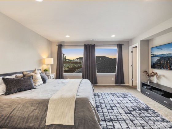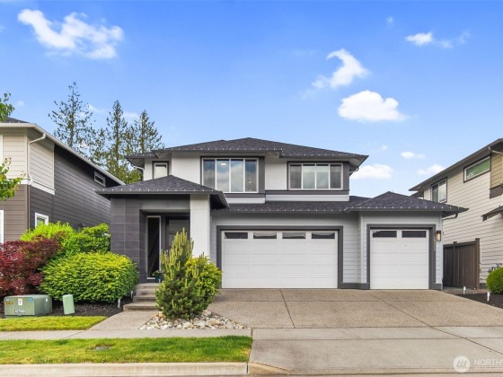 Welcome to refined living in Eaglemont, a premier MainVue community surrounded by scenic trails and lush parks. Built in 2021, this stunning 4-bedroom, 2.5-bath home offers a rare 3-car garage and central A/C—blending comfort, space, and style. The open layout features a gourmet kitchen with quartz counters, oversized island, walk-in pantry, smart appliances, and formal dining—ideal for entertaining or casual living. Dual sliders open to a covered outdoor room with gas fireplace, seamlessly connecting indoor and outdoor spaces. Upstairs, enjoy Cascade foothill views, a versatile loft, and a luxurious primary suite with large windows and double walk-in closets. Close to shopping, dining, schools, and commuter routes. Pre-inspected!