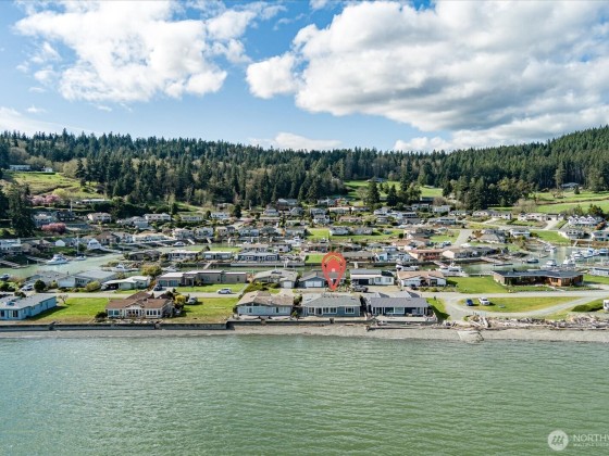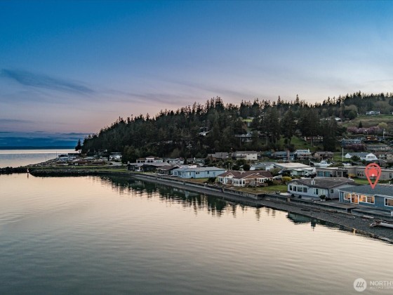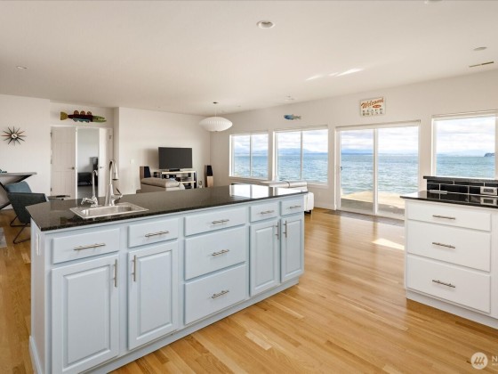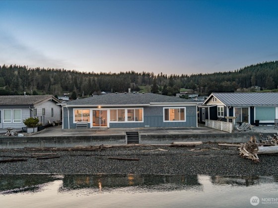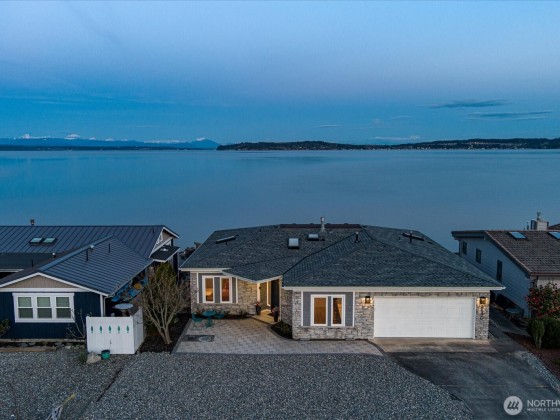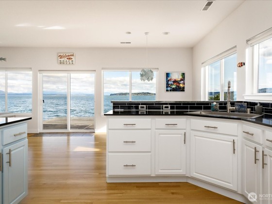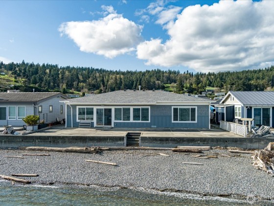Captivating views are yours in this move-in ready and beautifully updated waterfront home. 60' of low bank beachfront means you can go from the patio to the beach in seconds. Located in the premier boating community of Mariners Cove, this turn-key home wi/ts modern aesthetic & clean lines beckon you kick off your shoes, take in the views, & relish seaside living to the fullest. You'll love hanging out on the spacious patio, beachcombing for treasures, & enjoy some of the best crabbing/clamming the island has to offer right outside your door. A wonderful place to kayak, paddle board & whale watch. The best of both worlds: beach & waterfront, community docks & launch, sports court & more, Mariners Cove is a divine place to live. A must see!