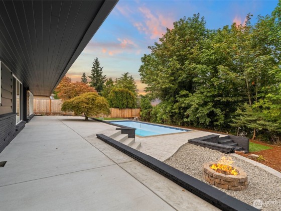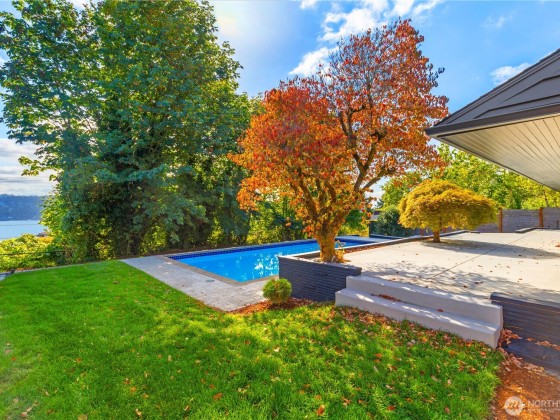 Located in the Sheridan Community of Lake Forest Park, this mid-century modern home offers privacy down a long driveway and serene views of Lake Washington. Fully enclosed by mature landscaping, the property creates a true sense of retreat. Step outside to a large pool and brand-new patio, surrounded by carefully curated gardens, perfect for relaxing or entertaining. Inside, the original brick wood-burning fireplace serves as a striking focal point, highlighting the home’s classic mid-century modern design. The primary suite features a luxurious walk-in shower with dual shower heads and dual sinks. A 1-car garage plus covered carport provide flexibility and convenience, while recent updates- including a new roof - offer peace of mind.