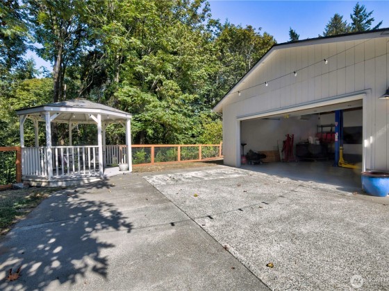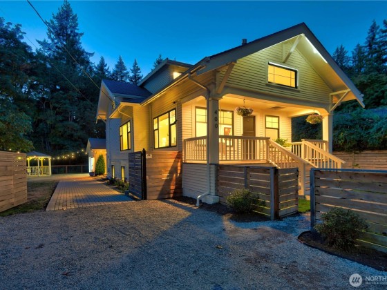Breathtaking restoration of this farmhouse-style craftsman on quiet street in Broadview w HUGE private lot overlooking Carkeek Park. New upgrades include kitchen, 4 bathrooms, plumbing, electrical, roof, walls, windows and more - home lives like new! Open floor plan w tons of natural light perfect for hosting or relax beside the Napoleon fireplace. 24’x24’ insulated, air conditioned two-car garage/shop includes 10,000lb lift! Fully fenced yard. & charming gazebo for outside entertaining. Two blocks from Viewlands Elementary, two blocks to Carkeek Park gate!