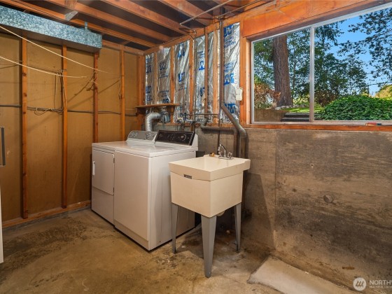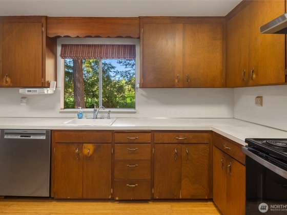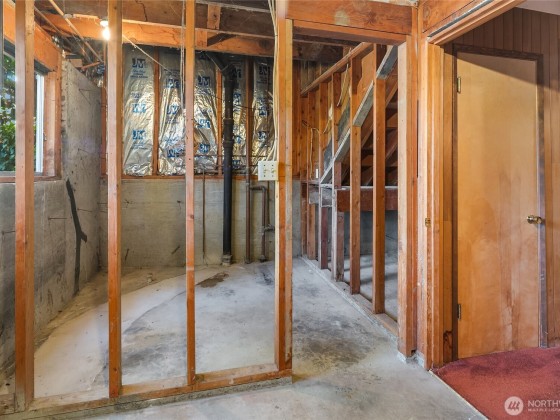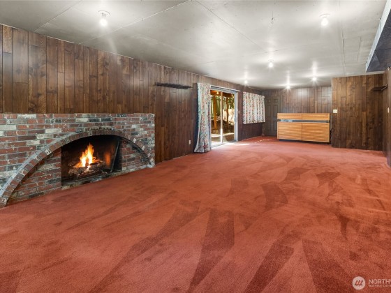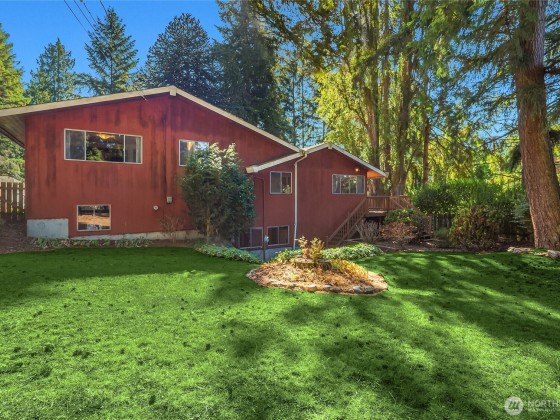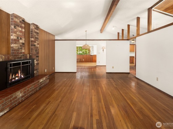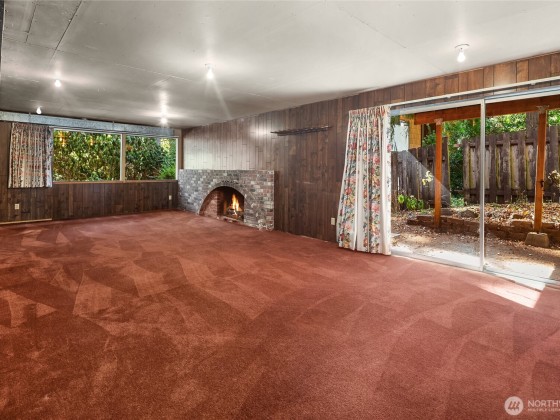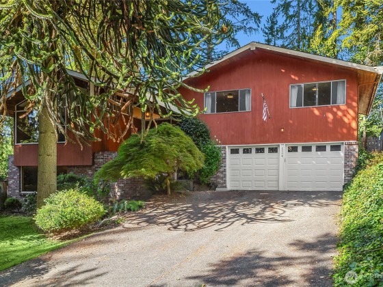 This is a remarkable opportunity to realize the potential of a spacious home situated on a private drive. This Three-bedroom residence awaits your personal touch. It offers ample space for entertaining, featuring a wraparound deck and an expansive backyard adorned with mature landscaping. Large windows flood the generous living room with natural light, while both upper and lower brick fireplaces provide a warm and inviting ambiance. The lower level area is already framed and plumbed, allowing for the addition of a bathroom to make a rental opportunity or multi-generational living. Ideally located with convenient access to Interstate 5 and two light rail stations, this property represents an excellent choice for a wise investment.