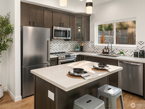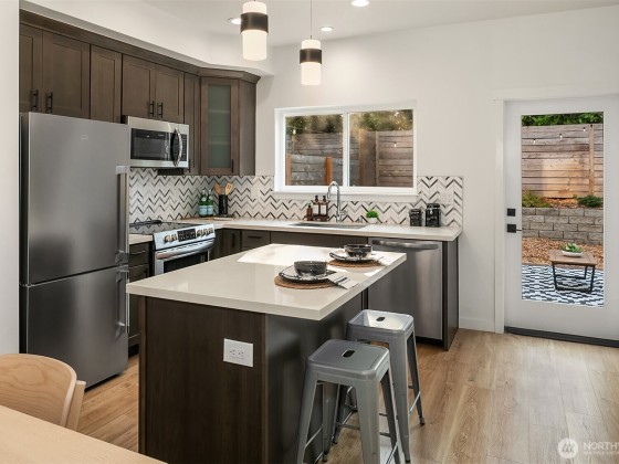This nearly new Haller Lake townhome has all the features you wish others had. You’ll love the layout with 3 beds, 2 baths and laundry upstairs and open concept living on the main. The kitchen with island opens to a fully fenced back yard. You’ll love the southern light for gardening and the deck is big enough to host evenings with friends. All the modern systems of a three year old home mean you get to just focus on getting to know your new neighborhood. Northacres park nearby has trails and a dog park. Amazing location as home sits back from the street and has two parking spots in addition to the garage. Easy access to transit and your option of two light rail stations by 2026. "Built Green" home with mini splits providing heat/AC.