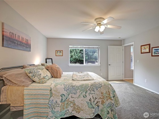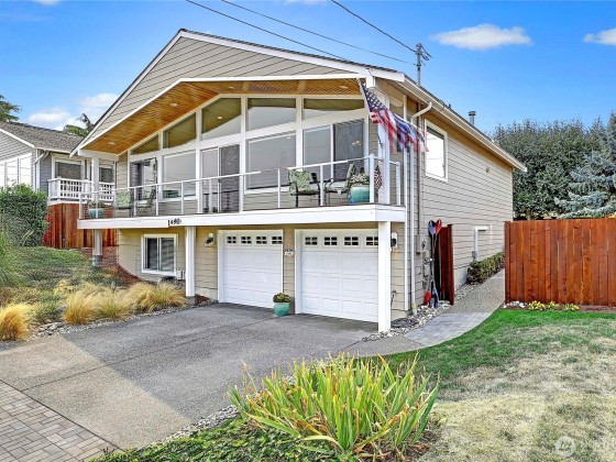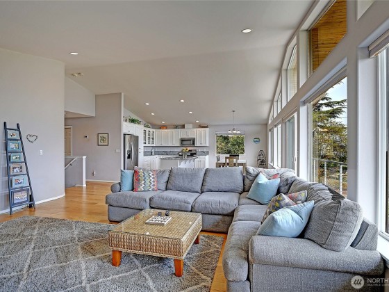 Welcome to your slice of Camano Island paradise. Enjoy laid-back island living in this light-filled Camano Country Club home w/ views of the Cascades & Port Susan Bay. Just a short stroll to a private beach, this home features vaulted ceilings, wall to wall windows, and an open layout that brings the outside in. The kitchen offers stainless steel appliances and hardwood floors, flowing into a bright living area with a cozy propane fireplace. Main floor includes a spacious primary suite, guest bedroom, & full bath. Downstairs: 3rd bedroom, office, full bath, and a flexible bonus room. New heat pump for year-round comfort, landscaped/fully fenced yard, paver driveway, and two-car garage. Enjoy access to 3 private beaches—no ferry required!