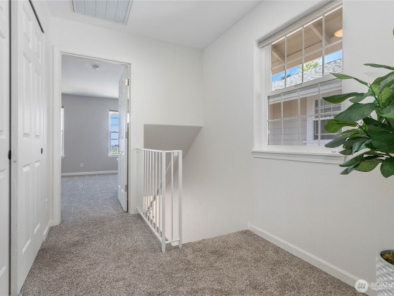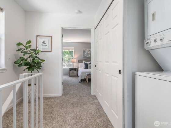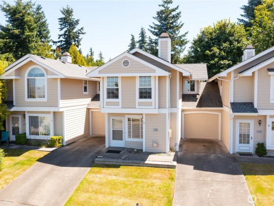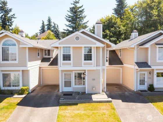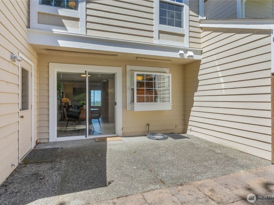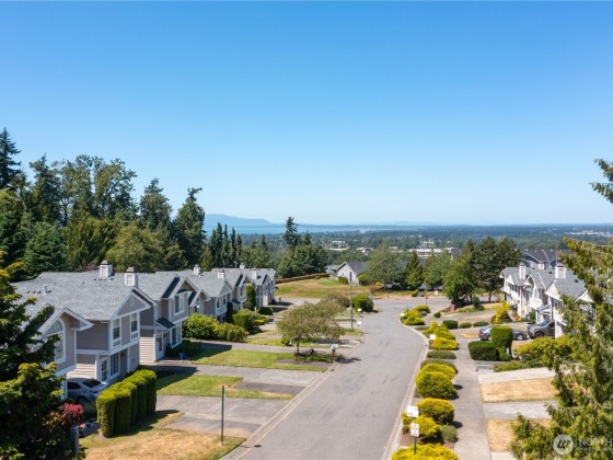 Enjoy convenient, low maintenance living, Bellingham Bay view, and amazing sunsets from this 2 Bedroom 2.5 Bathroom condo in Barkley. Lives like a townhome with no shared walls! Fresh paint, open layout, & abundant natural light. Main floor features living room, guest bath, & kitchen with dining area. Slider opens to a fenced courtyard backing to Northridge Park, very private and quiet. Upstairs: primary w/ ensuite & walk-in closet; second Bedroom with bay views & private ¾ bath. Deep 1-car garage w/ storage. Water, sewer, and lawn service included in the monthly HOA fee. Easy trail access to the right of the condo. Prime location near Barkley Village, Lake Whatcom & trails.