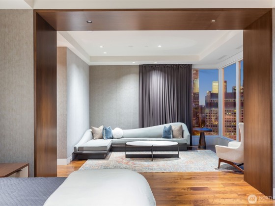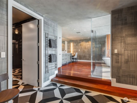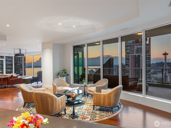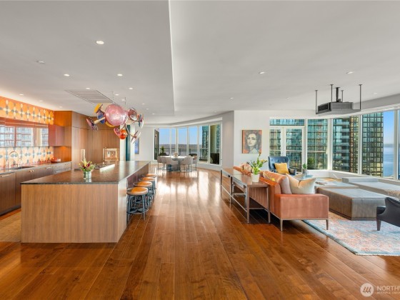 Achievement & position. Spaces, finishes & design exuding permanence, creativity & energy. Curious? Vibrancy emanates from natural materials: gallery walls of book-matched walnut, teak, leather, earthen tile & beautiful stone; embraced by sublime views of water & mountains. Perfect functionality: two private elevator vestibules, bedrooms (all en-suite) separated by copious living spaces. Entertaining is perfect: gallery walls display your latest, a central kitchen & a discreet butler’s pantry support. Two decks for conversations & innovation; flowing inside & out. Retreat to a dreamy primary suite: large, view bedroom with sitting room for reflection, deck access, immense dressing room and a bath that will knock your socks off. 4 parking.