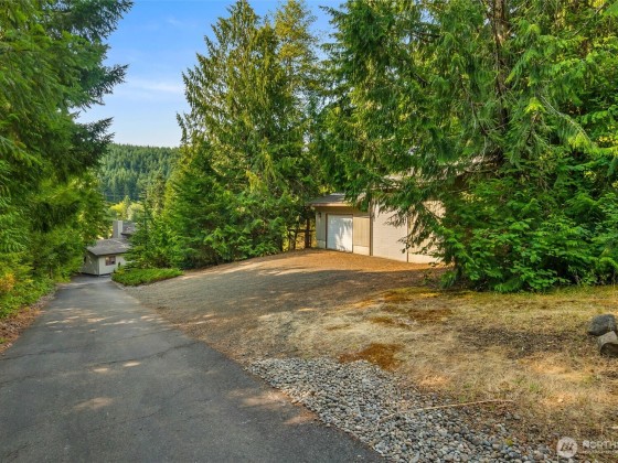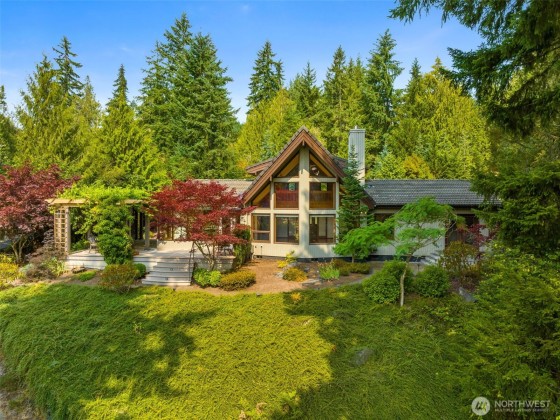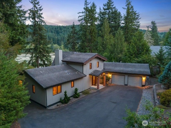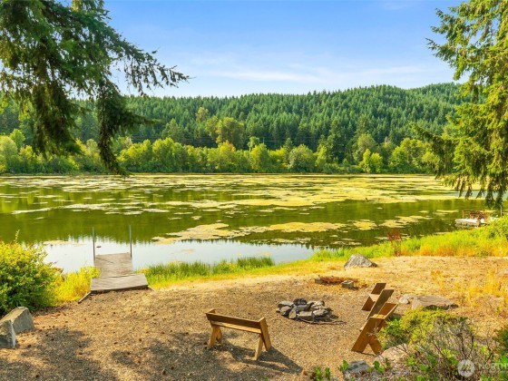 Your lakefront dream is here, nestled in evergreens on 1.49 acres w/ 140' of low-bank frontage on McIntosh Lake, complete w/ private beach & dock. NorthWest-contemporary chalet-style home features an amazing great room w/ cedar-clad ceiling & cathedral windows providing stunning lake & timber views, plus a flexible loft space. Remodeled kitchen w/ granite counters & island, newer appliances & a wonderful sunroom-style nook. From there step out to a spacious deck w/ pergala that is a great space for relaxing or gatherings. Primary suite w/ fireplace, jetted tub & walk-in closet, while a cedar sauna is hidden alongside the hall bath. Attached 2-car garage plus a 1,000+ SF 2 bay shop. Generator, Ductless HP. Vacation Vibes every day!