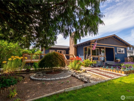 Charming one-level home with an open floor plan in a great established neighborhood. This updated home has a large remodeled kitchen with Quartz counters tops, a huge kitchen island, new appliances, and a multitude of soft close new cabinetry with double glass doors boasting a beautiful deck with BBQ space and outdoor sitting. Lots of living space and many rooms to hideaway and personalize. Fresh paint, New gutters and a new large decking surrounded by a landscaped yard and a great opportunity to live near schools, restaurants, coffee shops, gas stations etc. Grow your garden or sit back and enjoy your well kept easy to maintain yard. Lots of parking and space to park your RV too. Walk score high! Easy access to I-5 AND Canadian border.