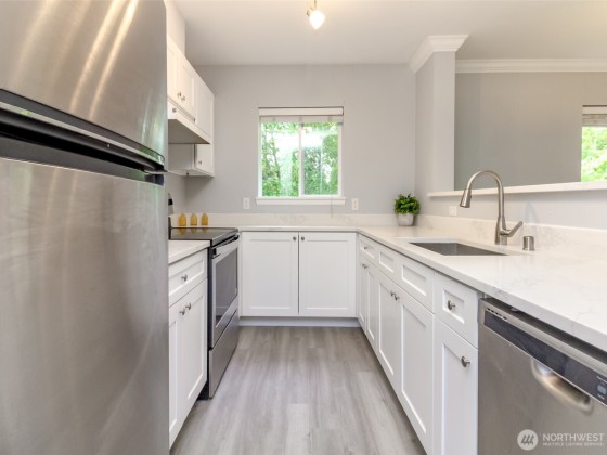 Adorable Condo in Latitude nestled in Federal Way near Twin Lakes. Spacious 2 bedrm 2 bath end unit. Home is remodeled, new flooring, new paint & move in ready! Natural light and serene park like setting. Property is filled with Foilage. A perfect place to relax! Stay Cozy in Fall and Winter by the fireplace. Top Floor Condo looks out at the greenbelt from private Balcony/patio. The lovely Kitchen has newer appliances. Completed with Washer & dryer. On top of it all You get SO MANY resort like community amenities: Clubhouse, fitness center, pool, hot tub, and sauna. Also, enjoy having your own garage & a designated parking spot included with your home. 15 min to Tacoma, 22 min to Seattle, & Seatac is a breeze for those who love to Travel!!