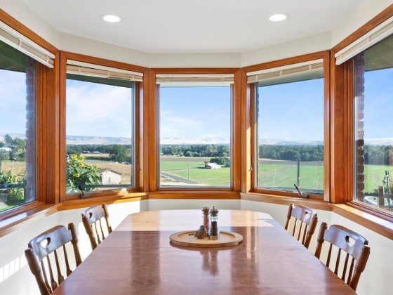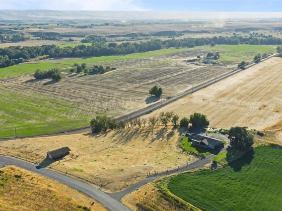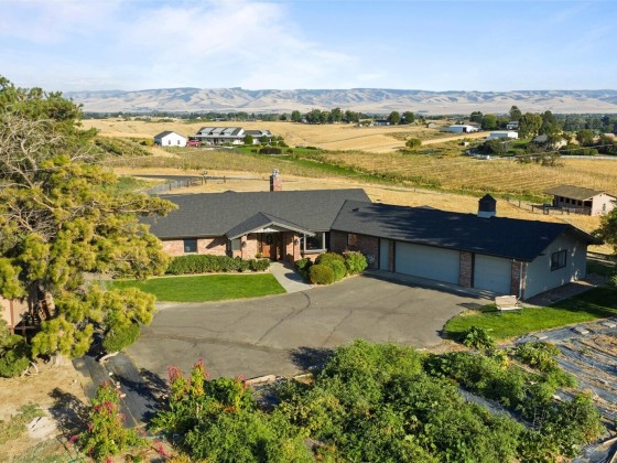 Nestled on a gentle hillside with sweeping 360-degree views of the Blue Mountains and beyond, this custom single-level home combines luxury, privacy, and country charm—all just minutes from downtown Walla Walla. The open floor plan features 3 bedrooms, 4 bathrooms, and soaring windows that fill the home with natural light. Elegant fireplaces create warm, inviting living spaces, while quality craftsmanship is evident throughout. A spacious oversized 3-car garage provides space for ample storage. Set on over 4 irrigated and fenced acres, the property includes a 4-stall barn with tack room and storage, making it ideal for horses or hobbies. A partially finished basement provides additional living space w endless potential for customization.