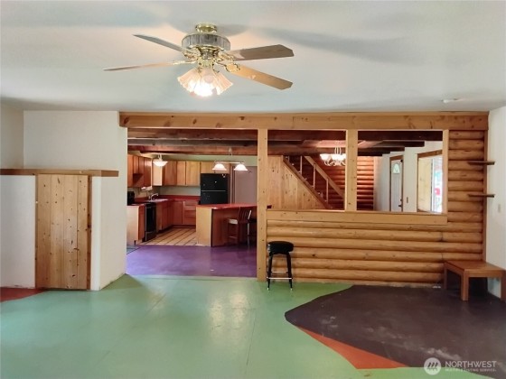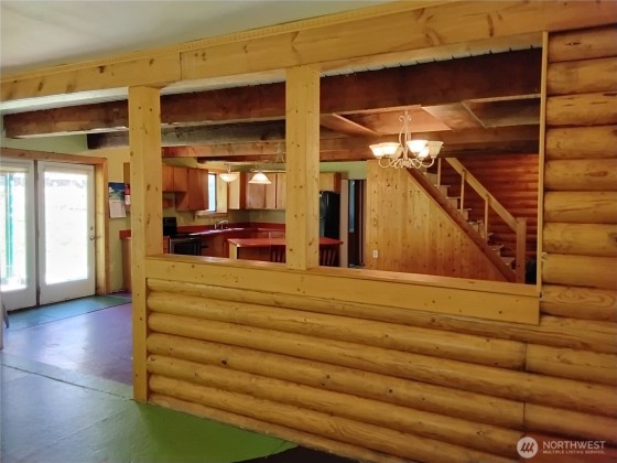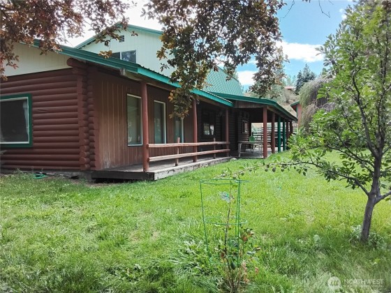 Customize your own rustic log cabin on 3+ acres in Pinecrest Estates—just 15 minutes from Omak or Tonasket! Stay cool in summer and cozy in winter while enjoying privacy in a community. The oversized 2-car garage features a finished bonus room, and the fully fenced yard is complete with garden space, a chicken coop with a run, and mature permaculture plantings, including organic pears, three varieties of cherries, grapes, and raspberries. Inside, the open-concept design features recessed lighting, a spacious kitchen with a large island, and an abundance of natural wood charm. With one bedroom on the main level and two upstairs, this home blends comfort, character, and endless potential for your personal TLC!