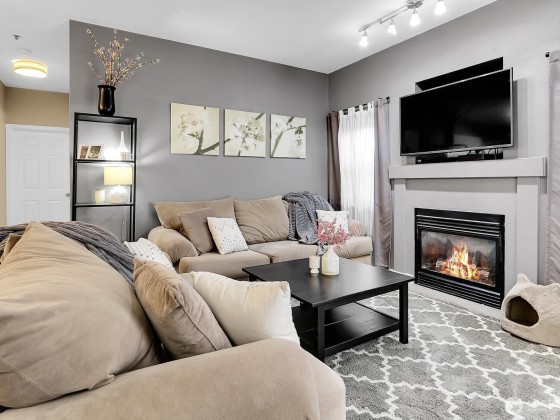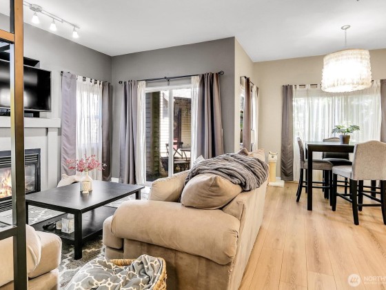 Lovely one level home with attached garage and gas fireplace! 9 ft ceilings give a spacious feel. New vinyl flooring throughout living area with ceramic kitchen and bathroom tiles. Large walk in closet in primary bedroom. Brand new water heater, and laundry room that leads to a private, extra large garage. Level entry with no stairs, suitable for handicap access. Amenities include outdoor pool, indoor hot tub, club house and exercise room. Easy access to freeways, public transportation, airport, hospital and major shopping.