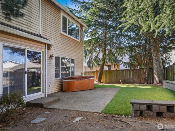 Welcome to this beautiful 3BD/2.5BA home in the desirable Lakeland area. Upper level features spacious primary suite w/ french doors, a walk-in closet, en suite bathroom, and two additional bedrooms share a full bathroom plus ample storage. Main level includes stylish kitchen w/ nice white cabinets, gorgeous island, and SS appliances. Cozy up in the living room w/ a gas fireplace, large windows, nice engineered hardwood flooring and slider to fully fenced gorgeous backyard w/ patio, and a hot tub perfect for relaxing w/ a beverage. AC for year round comfort & convenient location-close to everything!