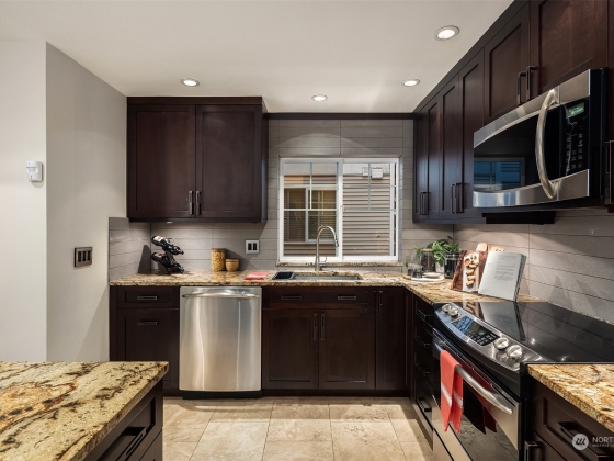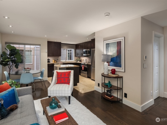 Introducing this charming end-unit townhouse ideally situated near Greenlake! Featuring 2 bedrooms, 1.25 baths, a private garage parking spot, and a quiet second level balcony. Ideal for cooking or entertaining in modern kitchen with slab granite countertops and island. Rare oak hardwood floors in living area. Nice enclosed backyard with deck for BBQs. Enjoy quick access to I-5 and Hwy 99, plus a variety of nearby coffee shops, restaurants, and PCC. Perfect for those seeking a blend of urban living in city for an incredible price. No HOA or dues. Great investment opportunity.