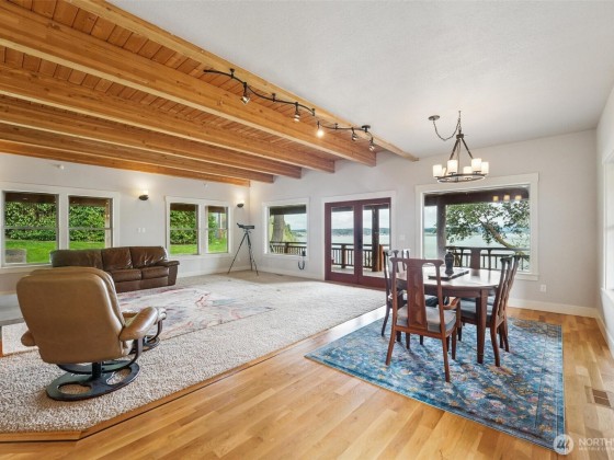 This remarkable waterfront home with views of Port Susan & the Cascade Mountains is in the heart of Cavalero on Camano Island, the no ferry island. This 3,460sqft home features 2 bedrooms with ensuites, bonus rooms, 3 bathrooms & open concept living featuring a gourmet kitchen & soapstone fireplace. High end finishes throughout from the exposed beams to the gorgeous hardwood floors. There is extra living space in the finished 579sqft loft with a view above the 3-car garage. Start your day relaxing on the covered wraparound porch with Mt Baker & sunrise views before heading to your deeded tidelines with sandy beach. Enjoy the island lifestyle & be close to all amenities including the nearby boat launch, ready & waiting for crab season!