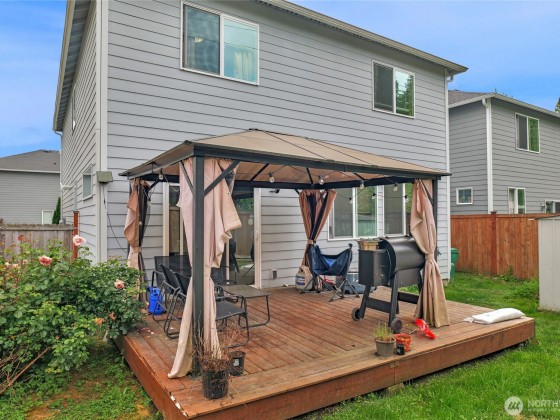 Spacious and full of natural light, this 4-bedroom, 2.5-bath home offers 1,916 sq. ft. of comfortable living in the desirable Shadowfax Community. Tucked away in a quiet cul-de-sac, the main level features soaring 9-foot ceilings and an open layout. The kitchen boasts granite countertops, a large island, and a walk-in pantry—perfect for everyday living and entertaining. Relax by the cozy fireplace in the living room or enjoy the fully fenced backyard with a deck. All bedrooms and a convenient laundry room are located upstairs. With an attached 2-car garage and just minutes from Downtown Silverdale, US Navy Bases, award-winning schools, restaurants, and waterfront parks—this home truly has it all!